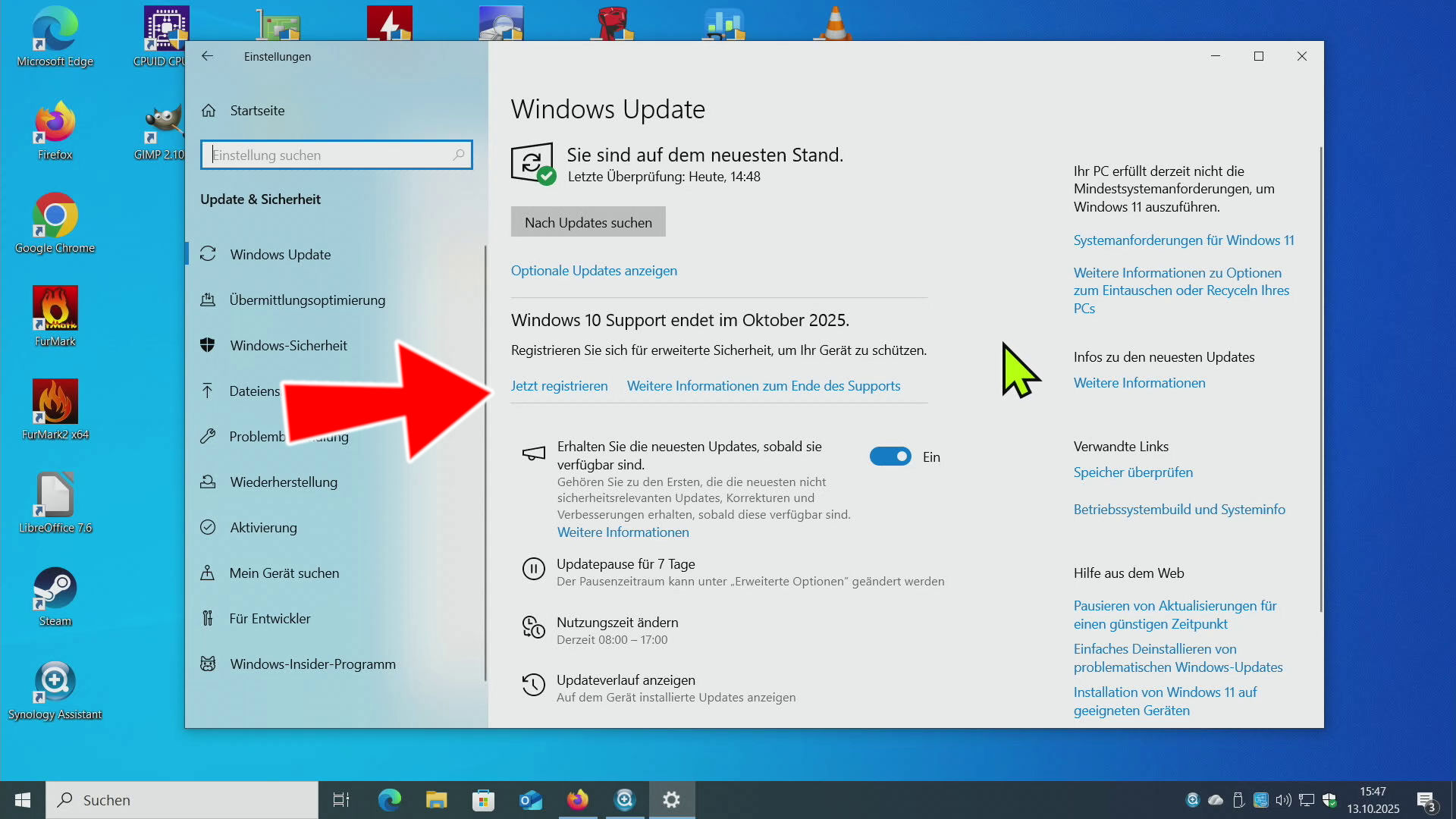 3. In den Windows 10 Updates „Jetzt registrieren“ suchen