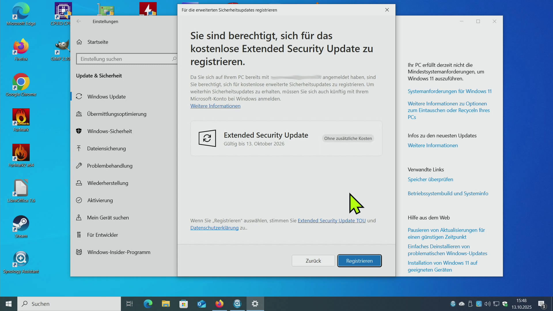 6. Sie haben sich für Extended Security Update bis zum 13. Oktober 2026 registriert